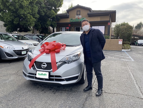 日本名、日産コンパクトカー[ノート]の北米版。 コンパクトな見た目からは想像できない荷室の広さを持っており、 街乗り用としても大活躍間違い無し。 今回のお客様は、日本からお問い合わせを頂き、 ZOOM会議ツールを使って現車のご紹介をし、安心してご購入を頂きました。 渡米後、空港から直接ご来店頂いてご納車が出来るこのサービスは凄く便利と大好評です。
